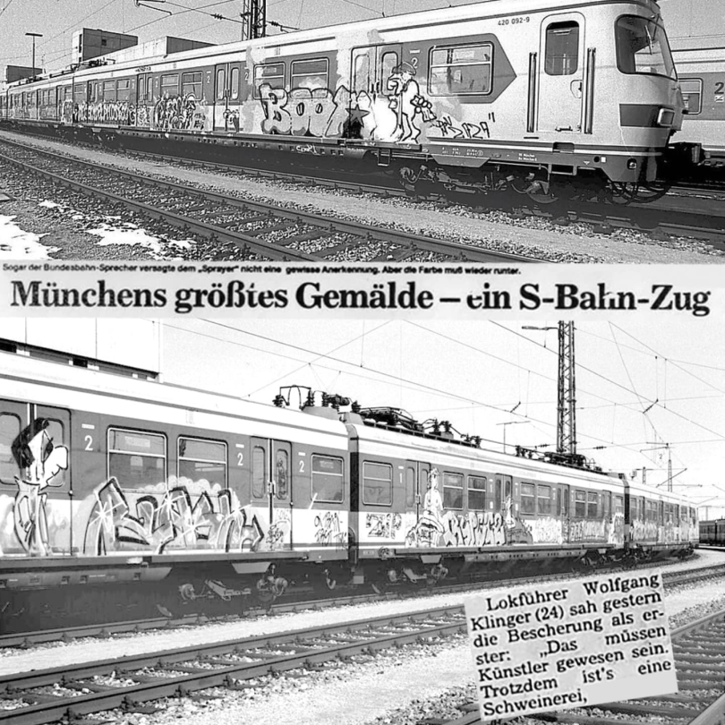 also check the related event!!! On the Night of 23.03. to 24.03.1985, Seven Teenagers Changed the Art World in Europe. What was to go down in history as the first Whole Train outside of America was dubbed by the Abendzeitung and Bild Zeitung in 1985 as Munich’s largest and longest painting—and, unsurprisingly, it did not receive universal acclaim. Admittedly, it took more than a few years for art critics to accept that self-taught artists wielding spray cans instead of oil brushes were just as capable of creating art. But 40 years ago, in Munich—or more precisely, in Geltendorf—a trend was…